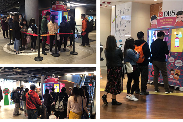 By building an automated distribution process, audience can receive their red packets from completing the sign-up process at the digital vending machine. In the sprit of the Year of the Pig, DBS designed unique red packets that the participants can redeem as rewards after interacting with our digital dispenser. 3 popular locations were arranged for redemption including K11, TOP & LKF.